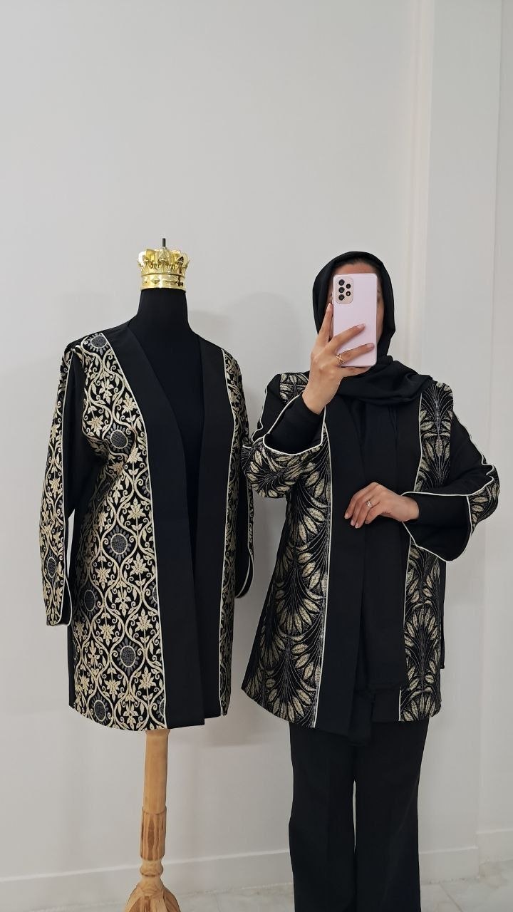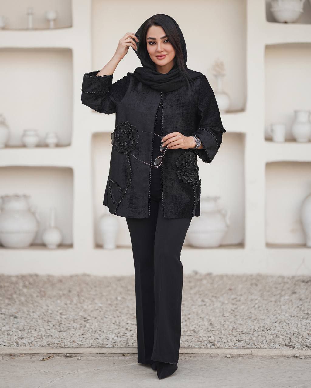 کت مخمل مروارید دوزی با گلدوزی پاپیون مدل دنیز