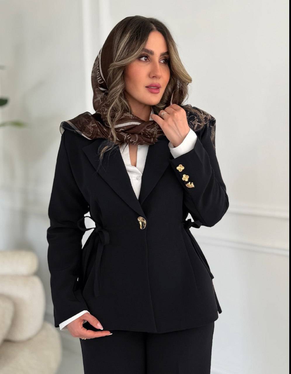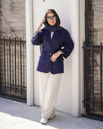 لینن طرحدار یقه بلیزر بغل چاک *