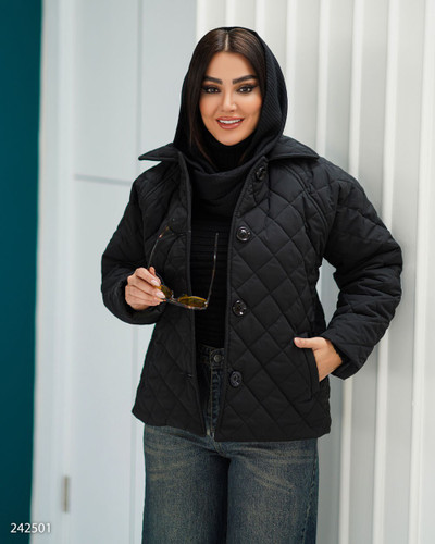 کاپشن کلاهدار کوتاه امبوردی مدل گلنوش