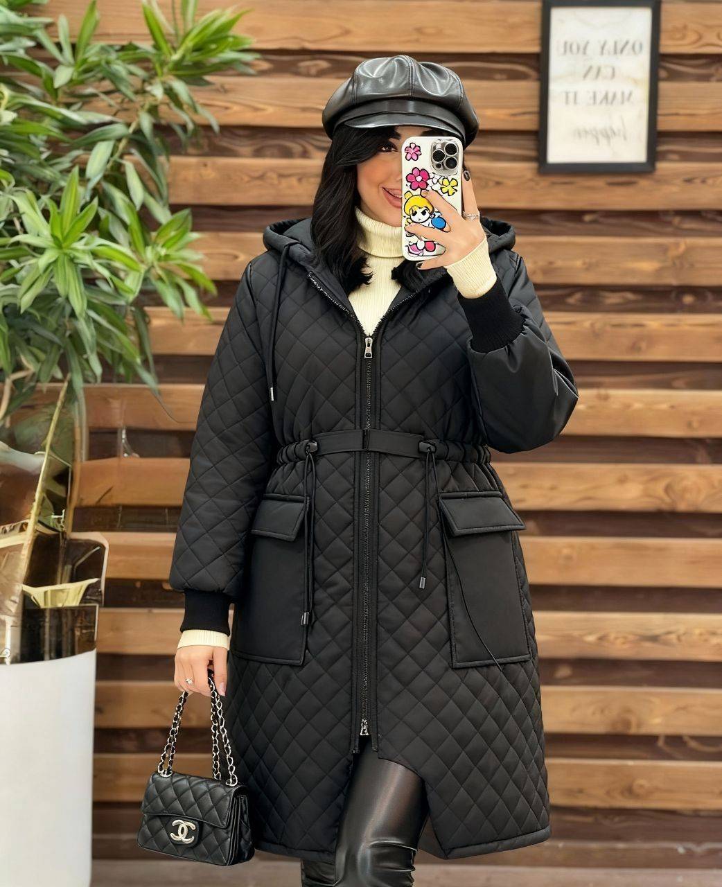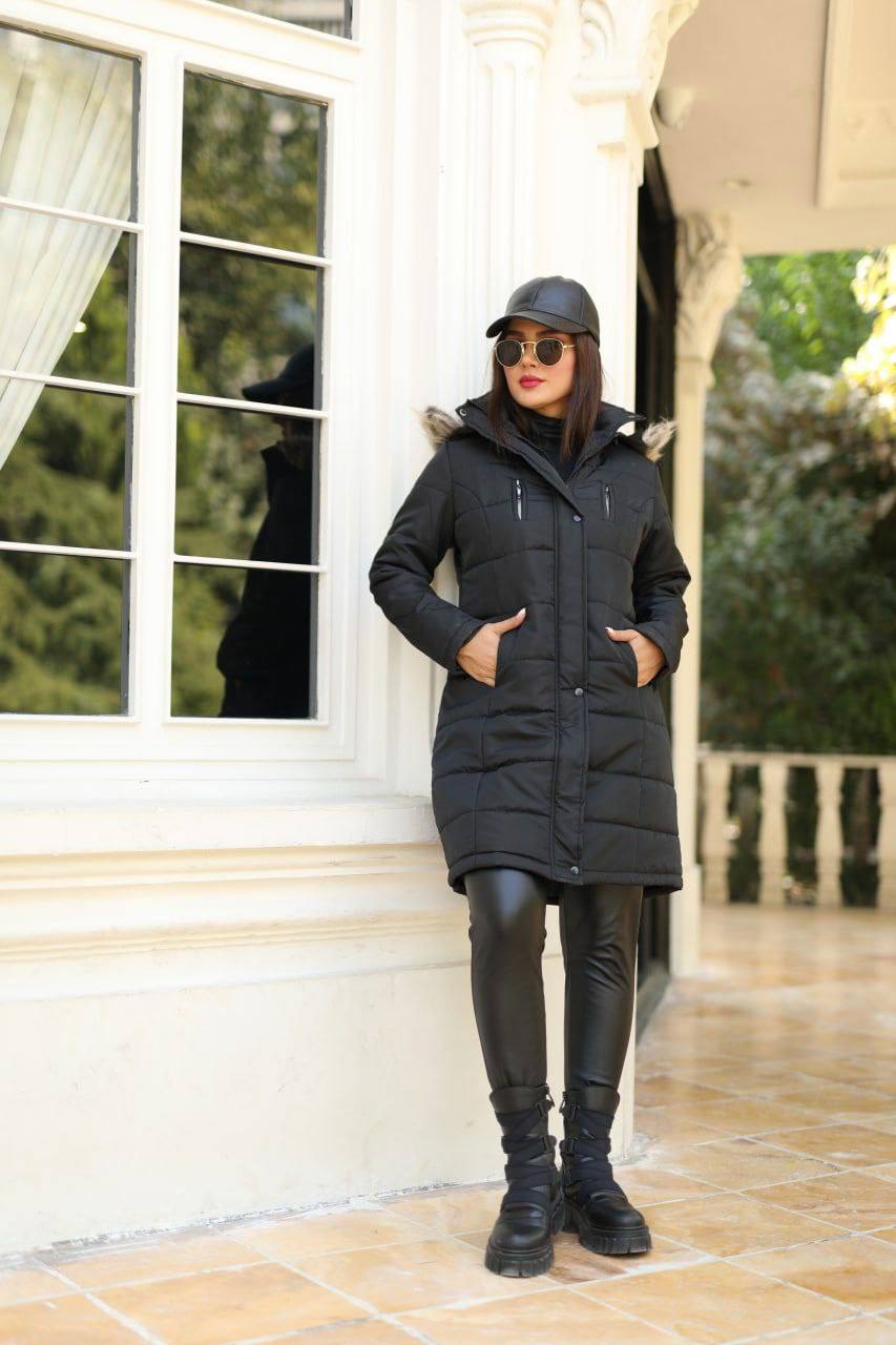 کاپشن کلاهدار کوتاه امبوردی مدل گلنوش