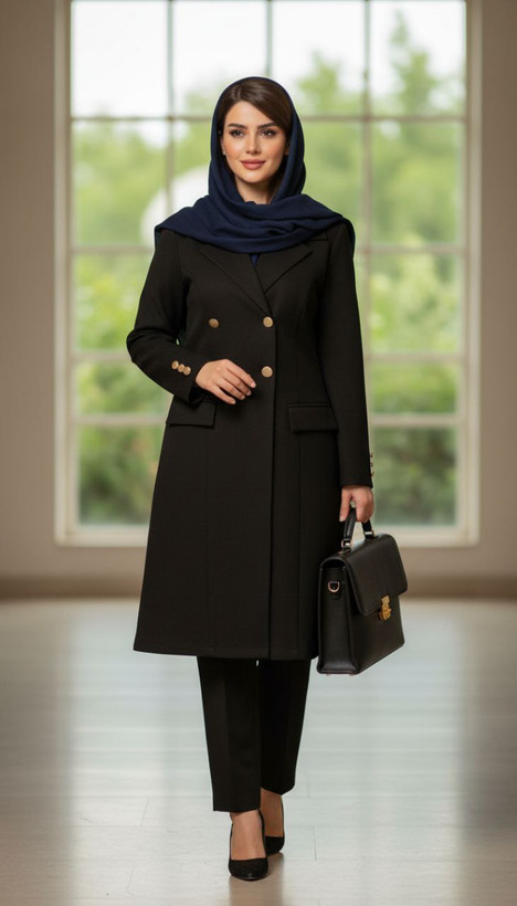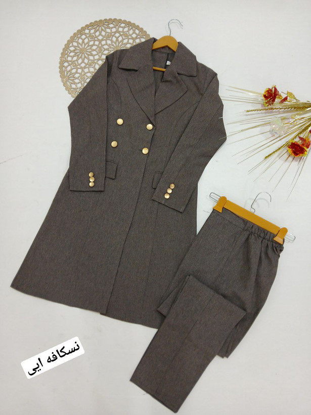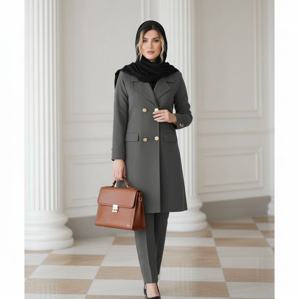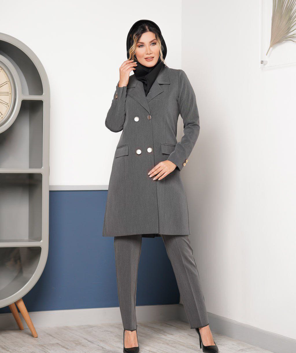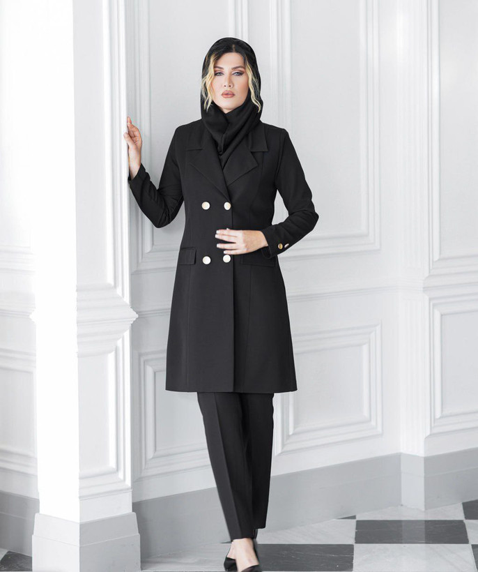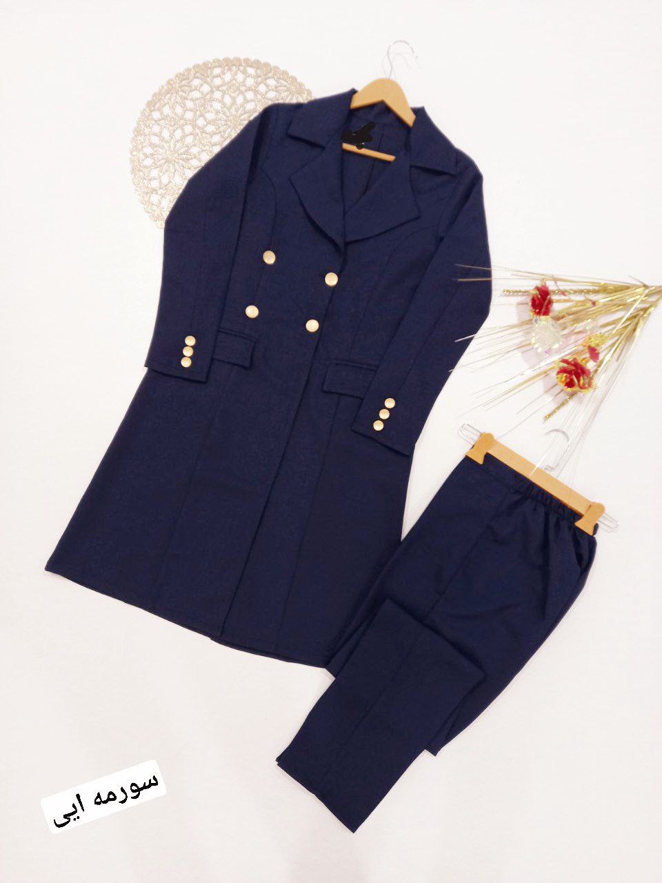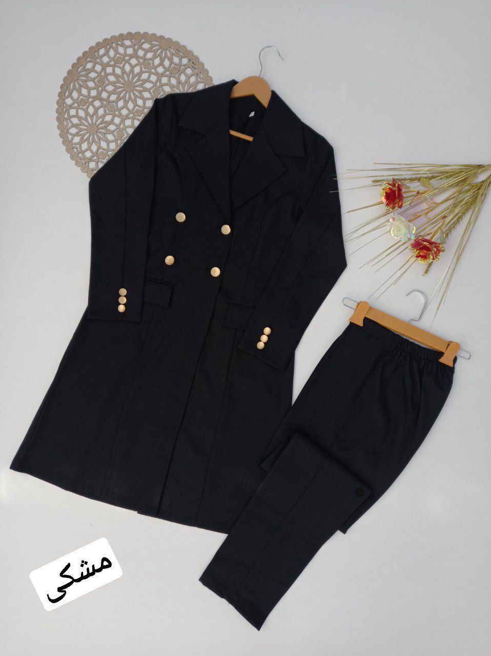 مانتو شلوار اداری ساده ۴ دکمه طلایی