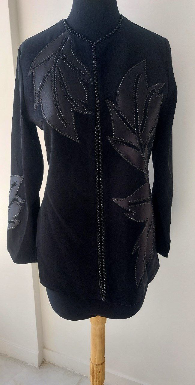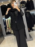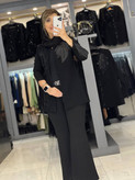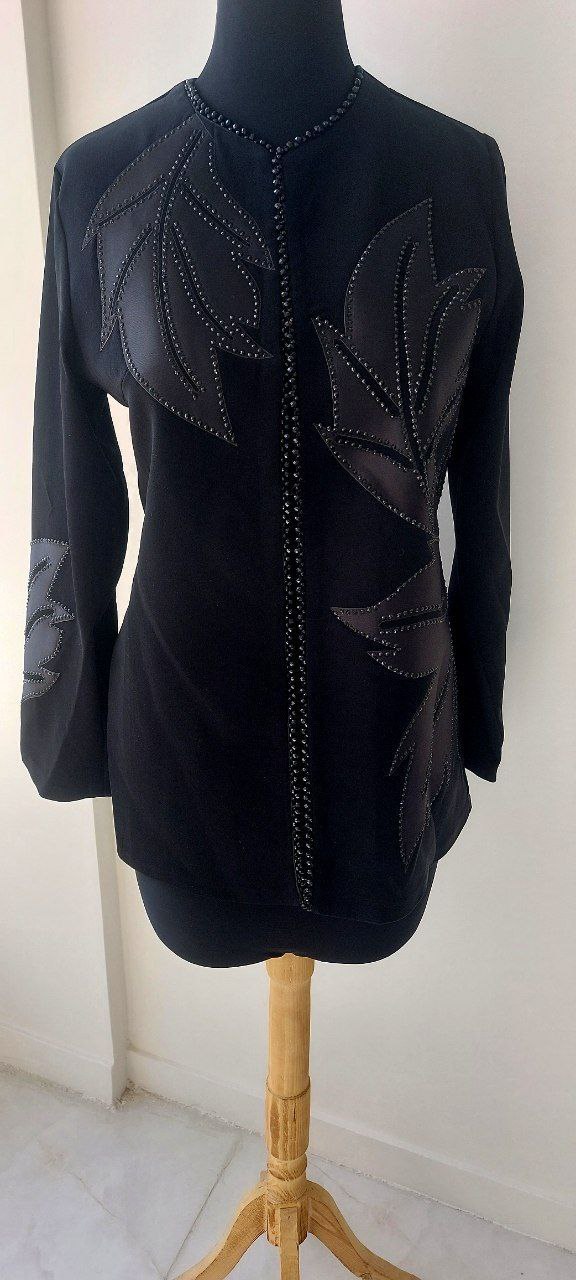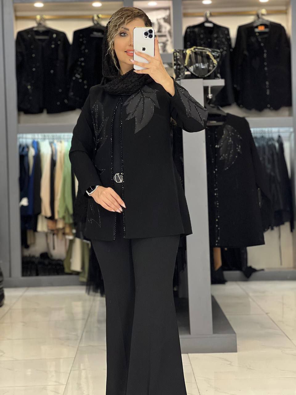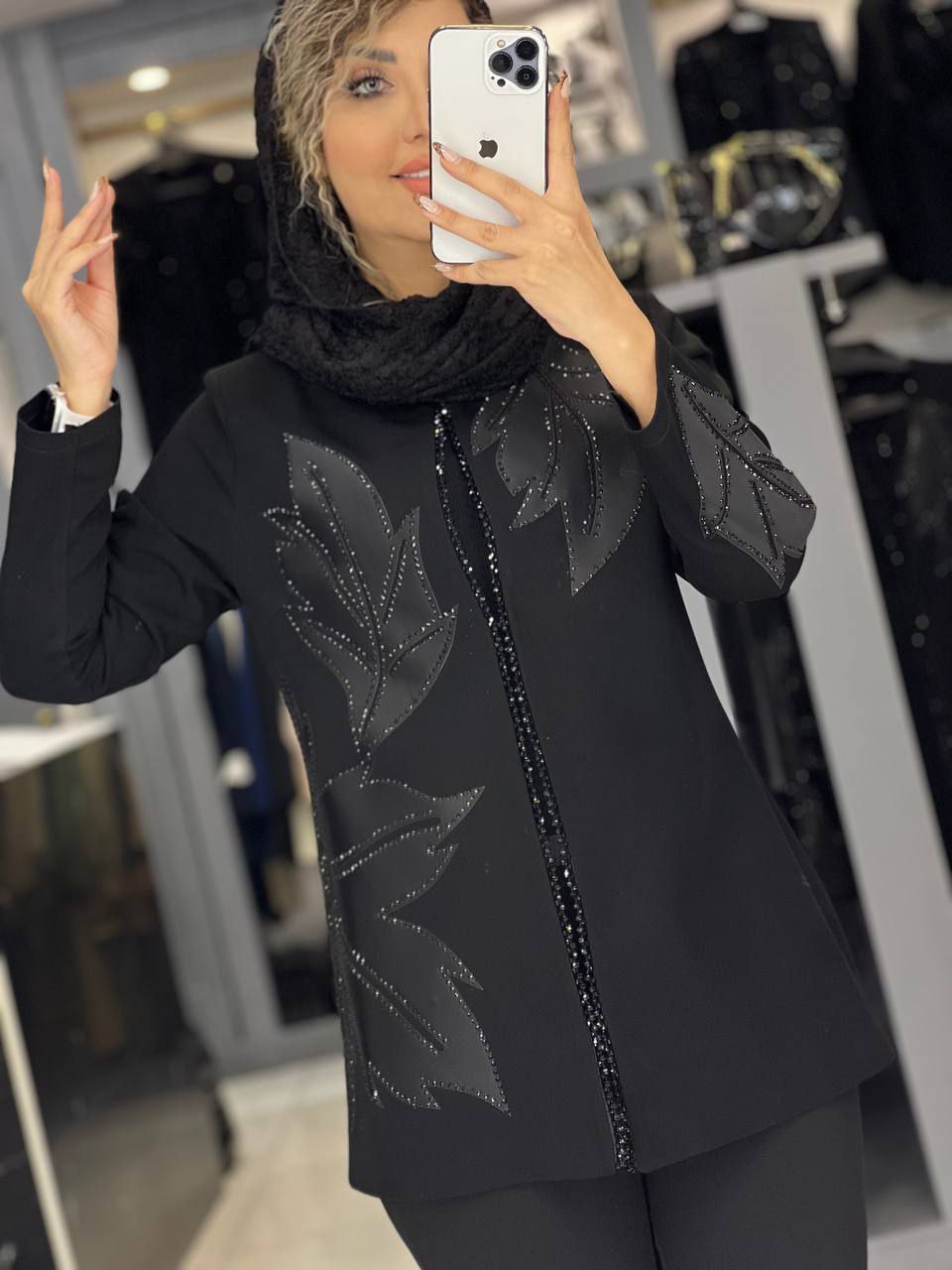 جنس : کرپ مرویجت با طرح برگ ساتن ترک و نگین مشکی