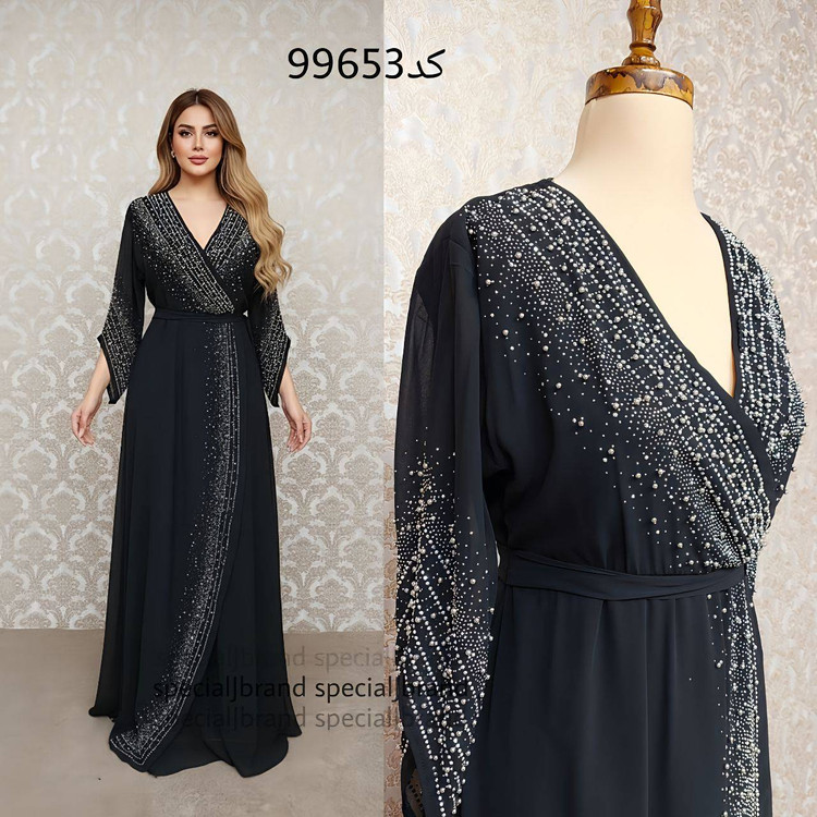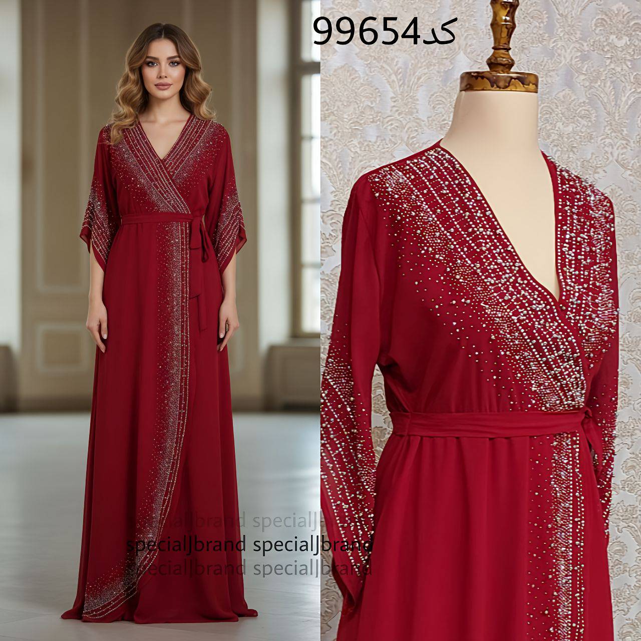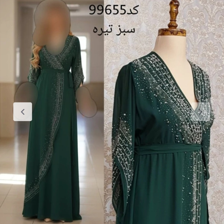جنس : حریر سنگکاری شده (قد ۱۵۰)(کمربند داره)(زیپ داره)