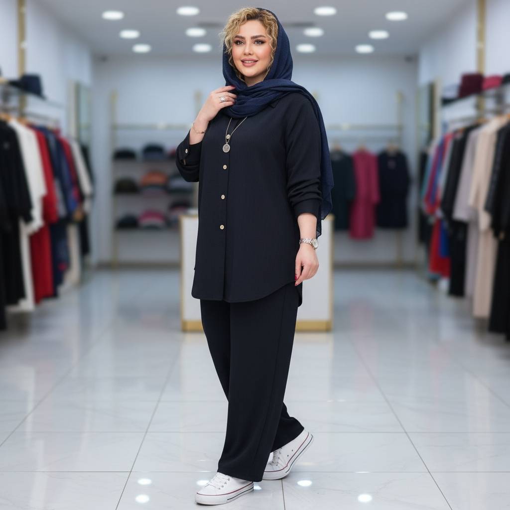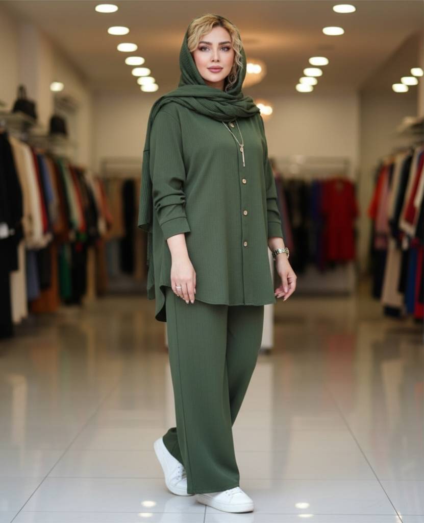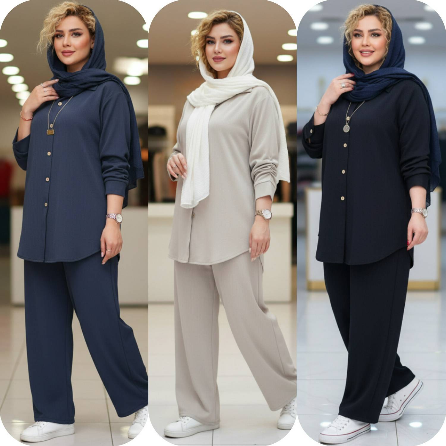 این ست و نخری ضرر کردی چون با این کیفیت و این قیمت عمرا پیدا کنی🤗 با این مانتو شلوار دیگ دغدغه ست کردن نداری😍 مانتو شلوار بسیار کاربردی و راحت ، کاملا شیک و بروز 🥰 جنس عالی با کیفیت بالا و نخور بسیااار زیباااا و جذاااب😍👌