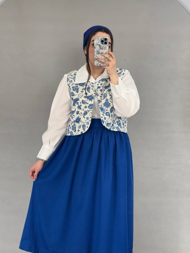 ست شومیز دامن و جلیقه نیلگون