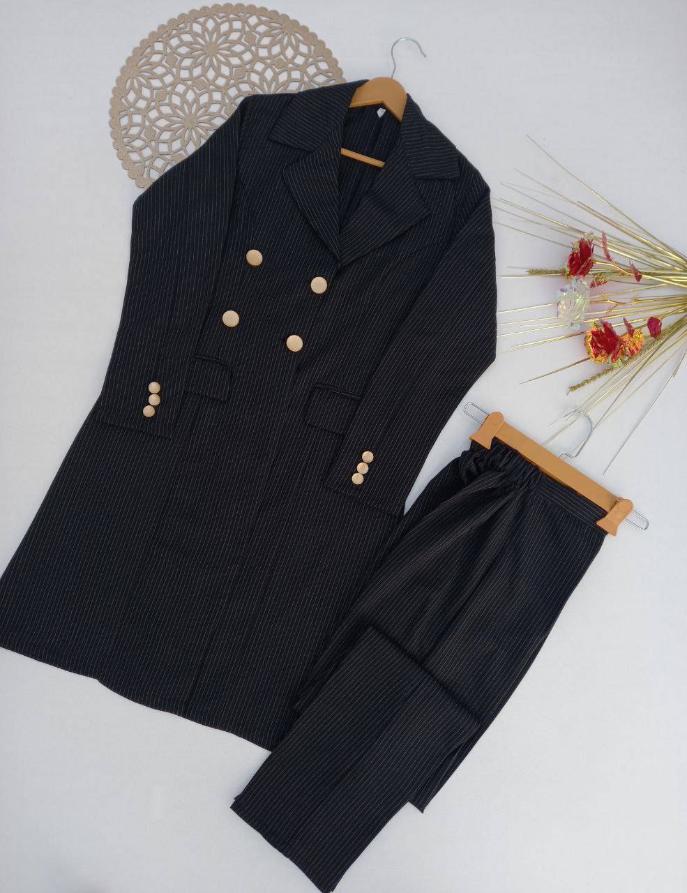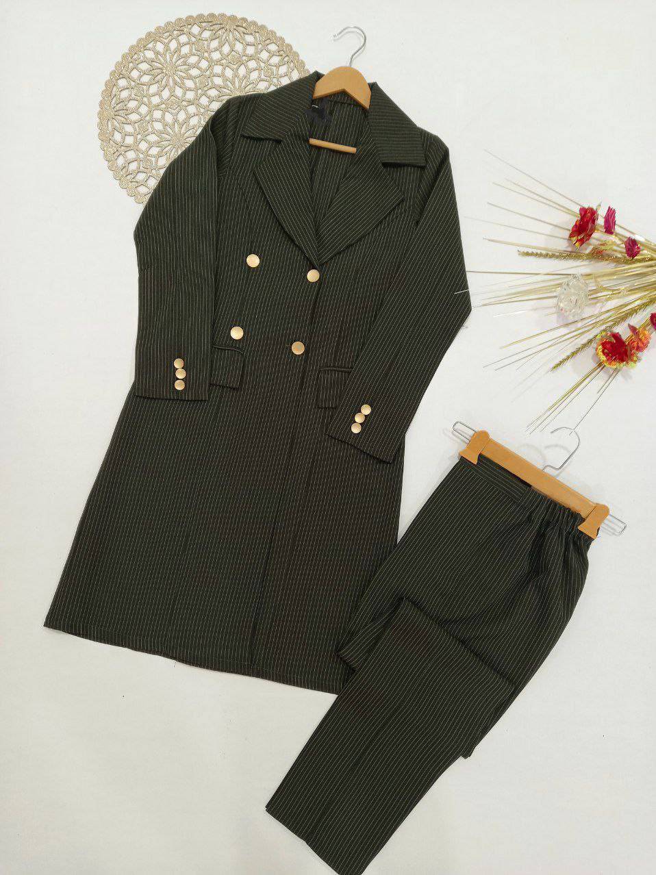 ست مانتو شلوار اداری دیپلمات مدل ۴ دکمه