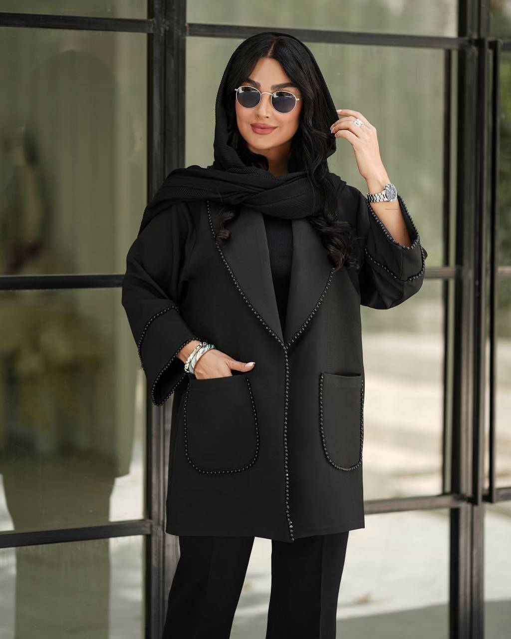 کت یقه آرشال نوار مرواریدی دوجیب