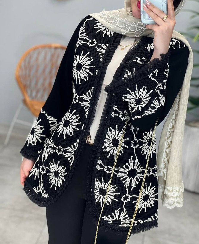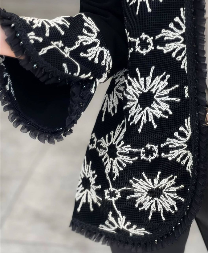 جنس پارچه كرپ لمه جت بلك +خرجكار دانتل + سنگ دوزي +جلو كار لايي پرشين