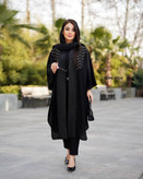 🧵 مشخصات پارچه: کرپ حریر جتبلک درجه یک (بسیار لطیف و مشکی زاغ) در ترکیب با ژاکارد شاین و گلدوزیهای ظریف صنعتی (تضمین عدم پرزدهی و ثبات کیفیت در درازمدت)