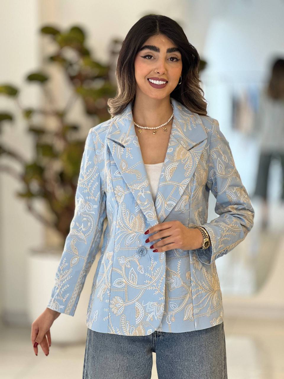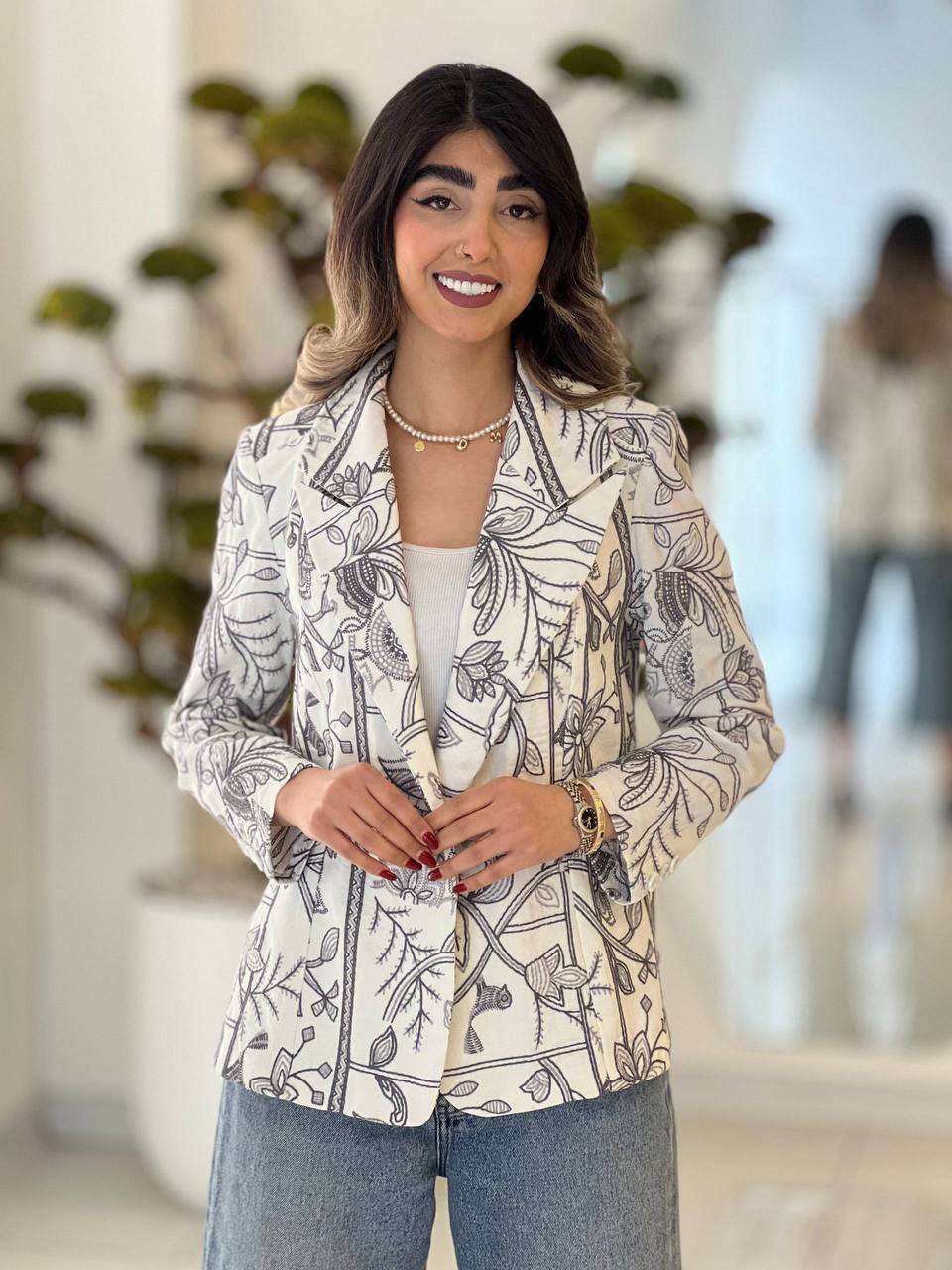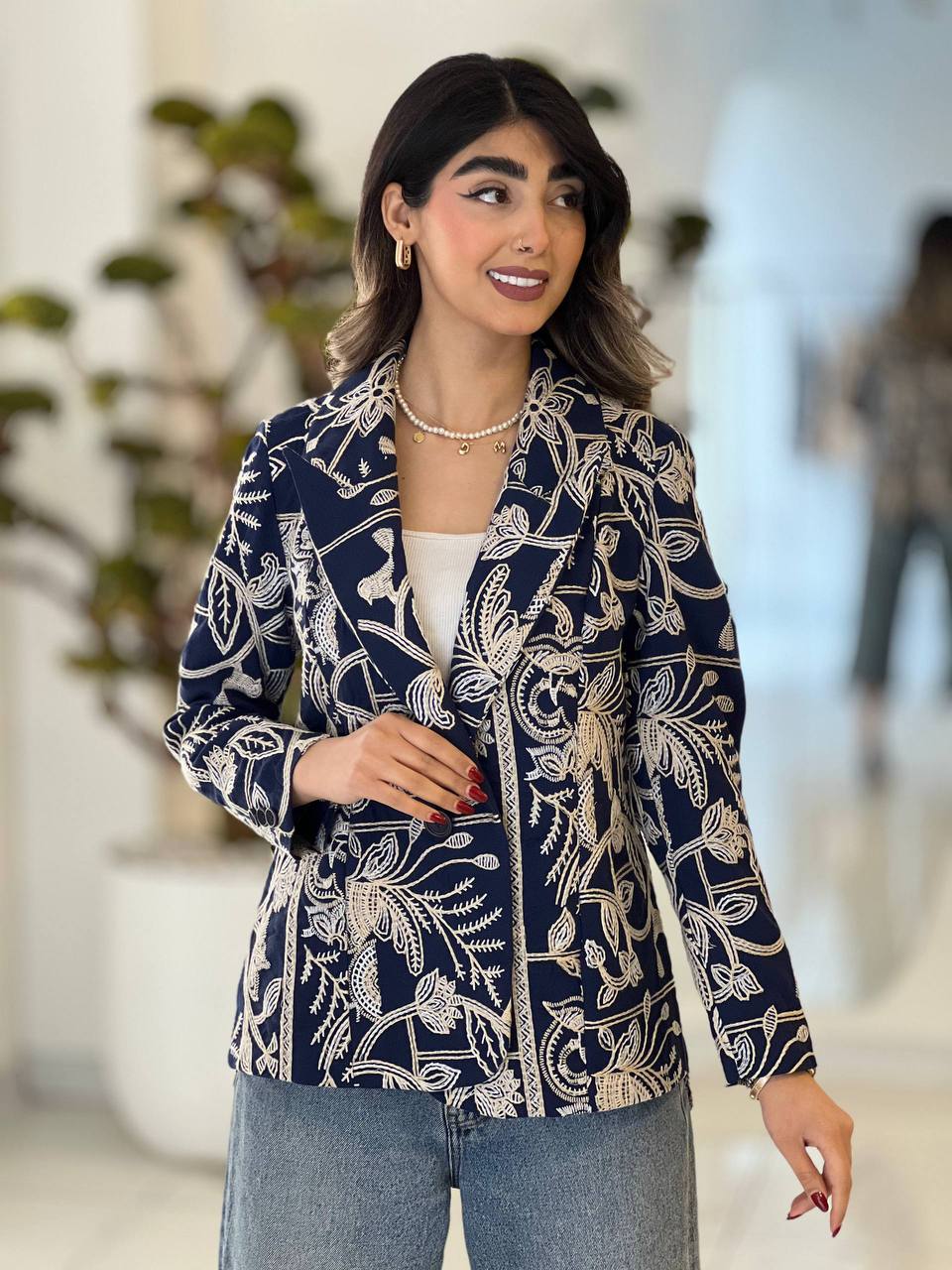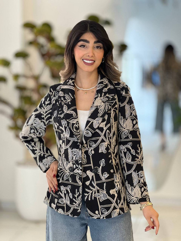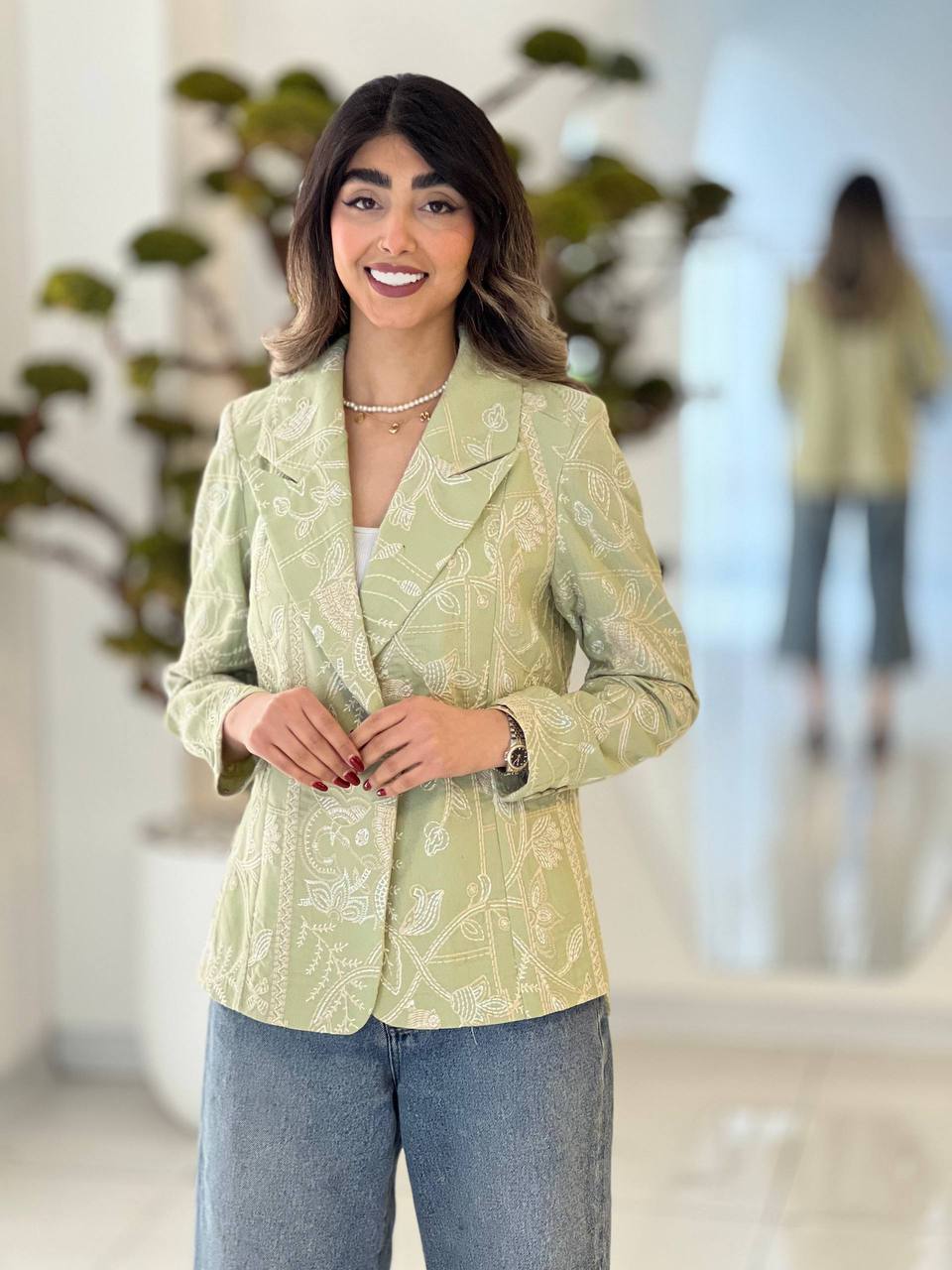 🌸لینن طرحدار یقه بلیزر بغل چاک