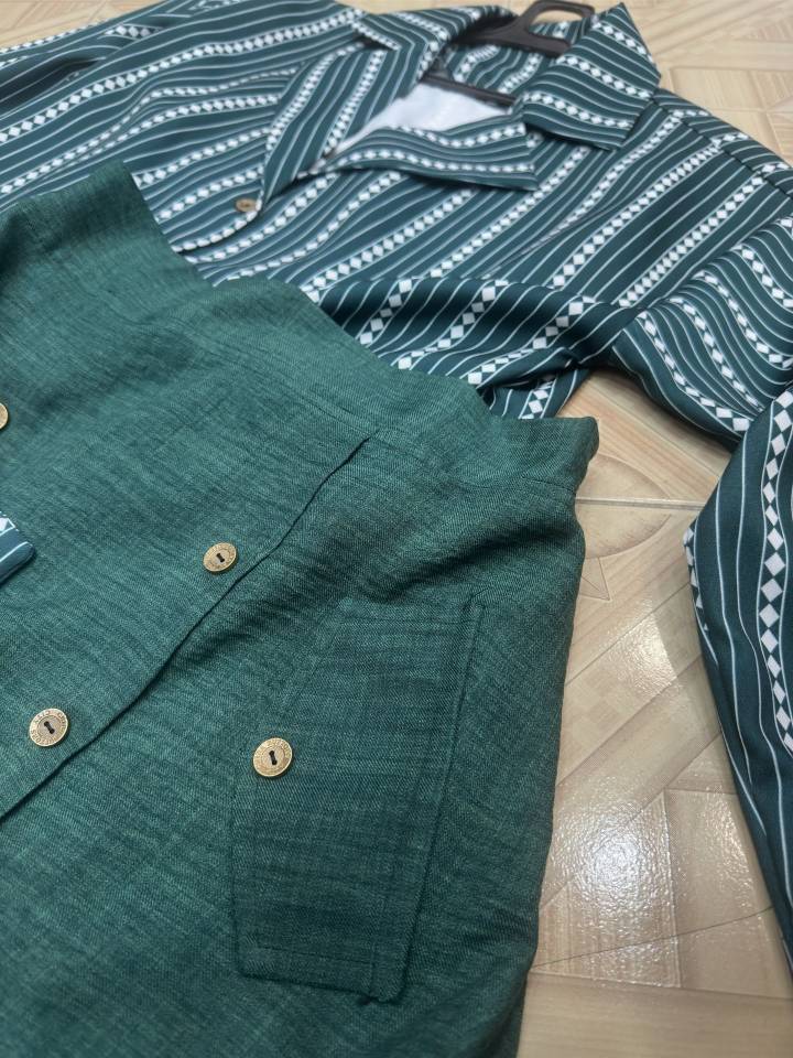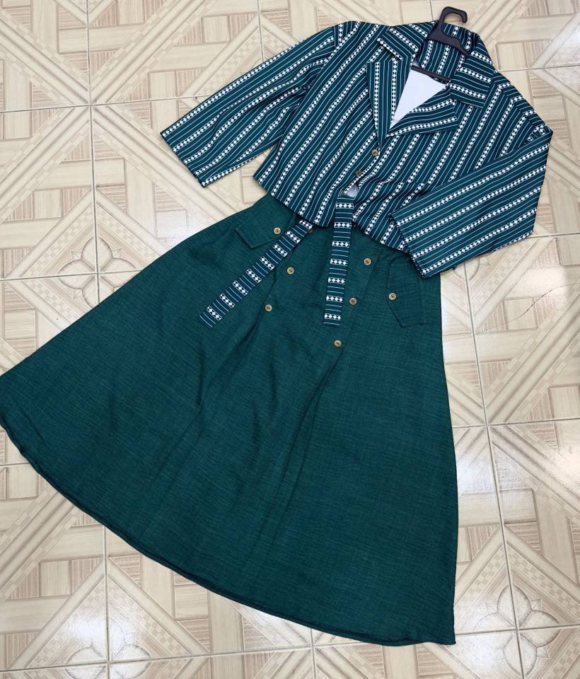 🆔 شناسه : #86212 👚نام : ست شومیز دامن آرام 👗✅سایزها : فری-تا46 ✅قد دامن 90 ✅قد شومیز 55 ✅دورسینه کت 110 ✅قد استین از یقه 65 از دوخت سر شانه 47 ✅مچ استین کت مطابق ژورنال ساده است ✅شومیز اصلا بدن نما نیست چون گرم پارچه بسیار بالاست. 🧵جنس : شومیز مازراتی نخ توییست دامن شانتون 🖌 رنگ بندی : سبز - کرم - ⚜️ سایز ها : فری سایز -