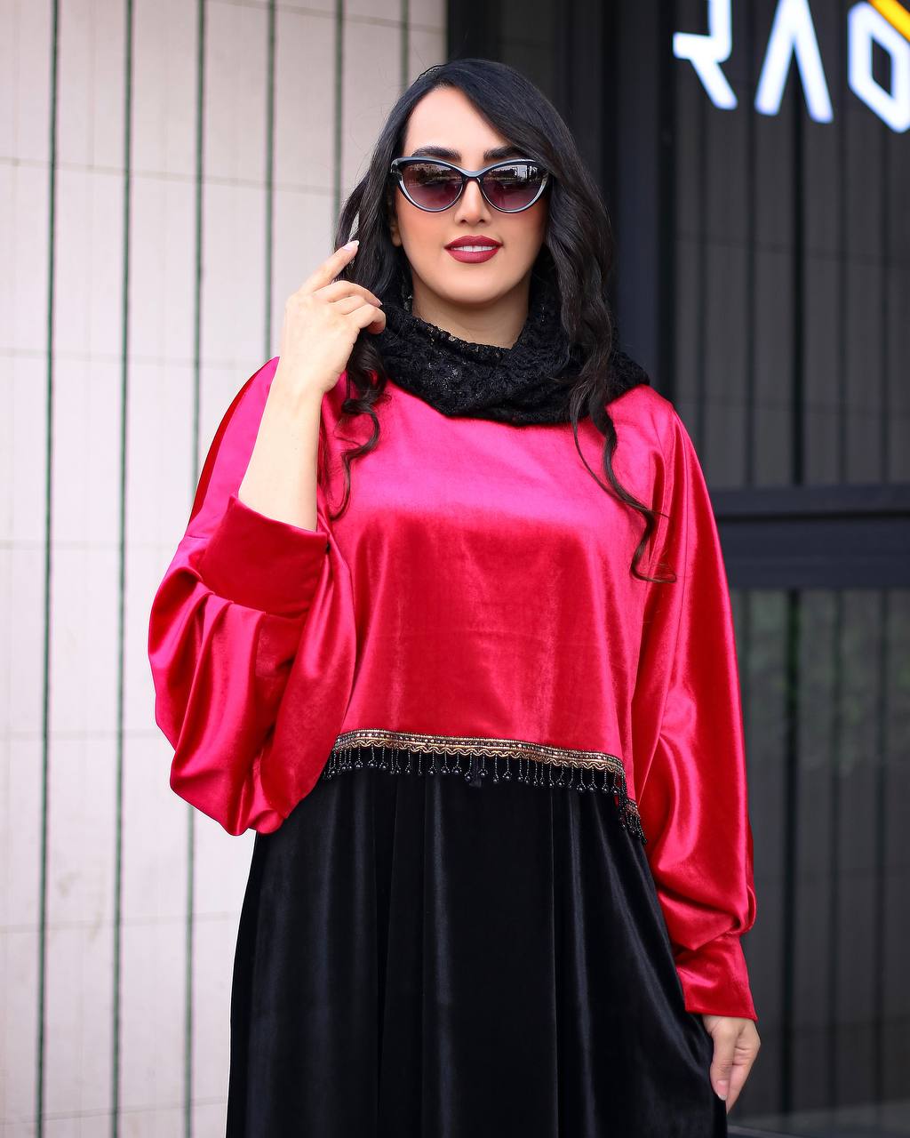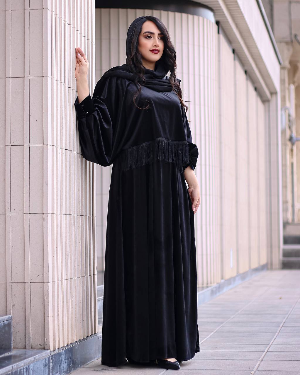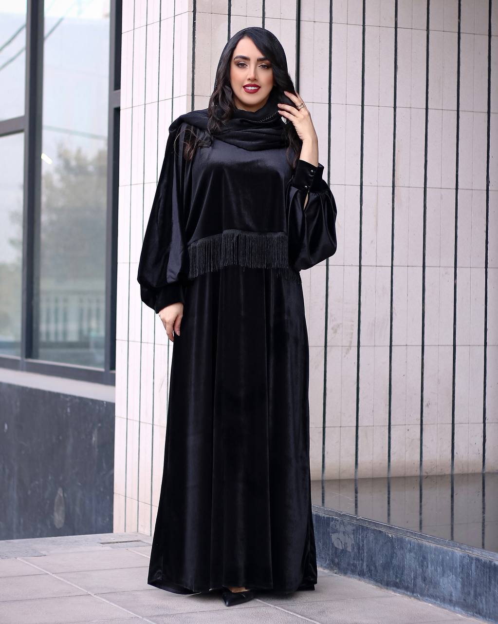 جنس سارافون: مخمل مشکی با ریزش عالی