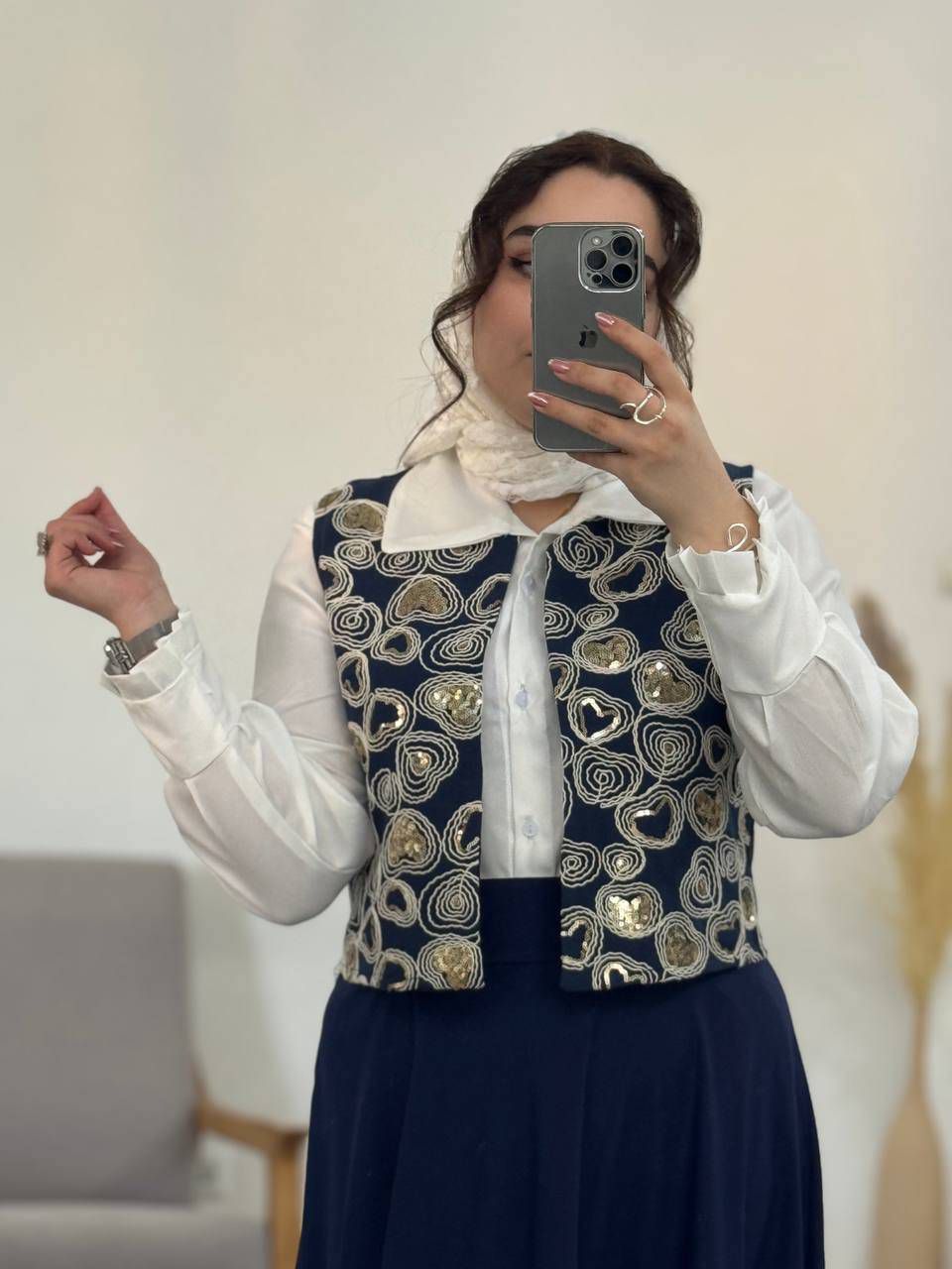 🧵جنس : جلیقه لینن جوت پولک دوزی درجه یک
