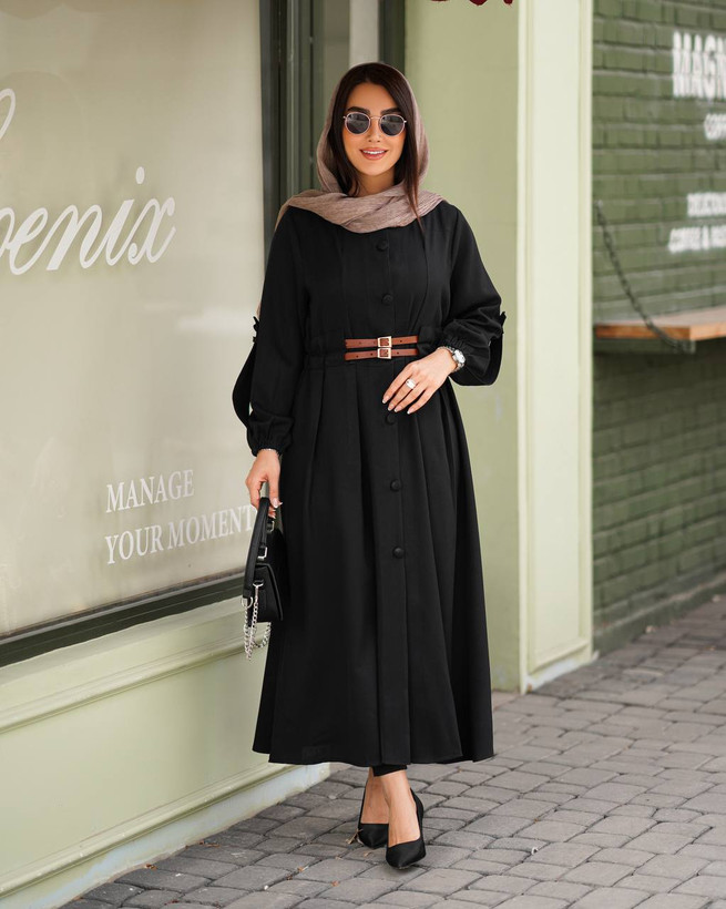 🟢مانتو بلند دو کمربندی شانتون مدل کرشمه