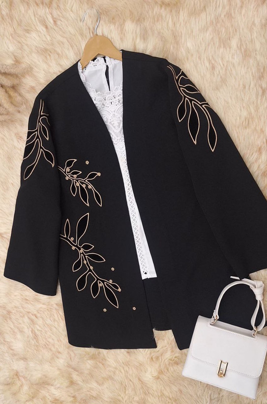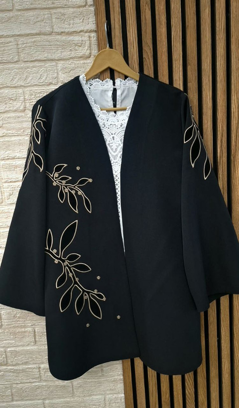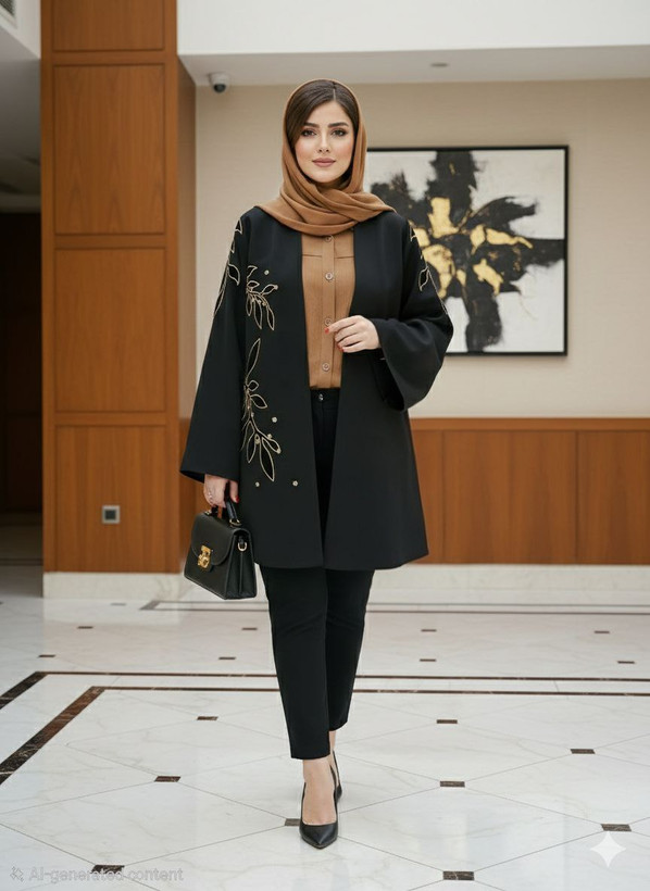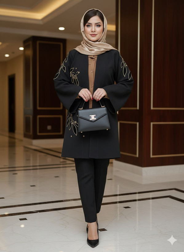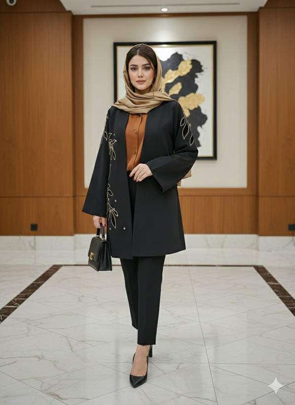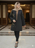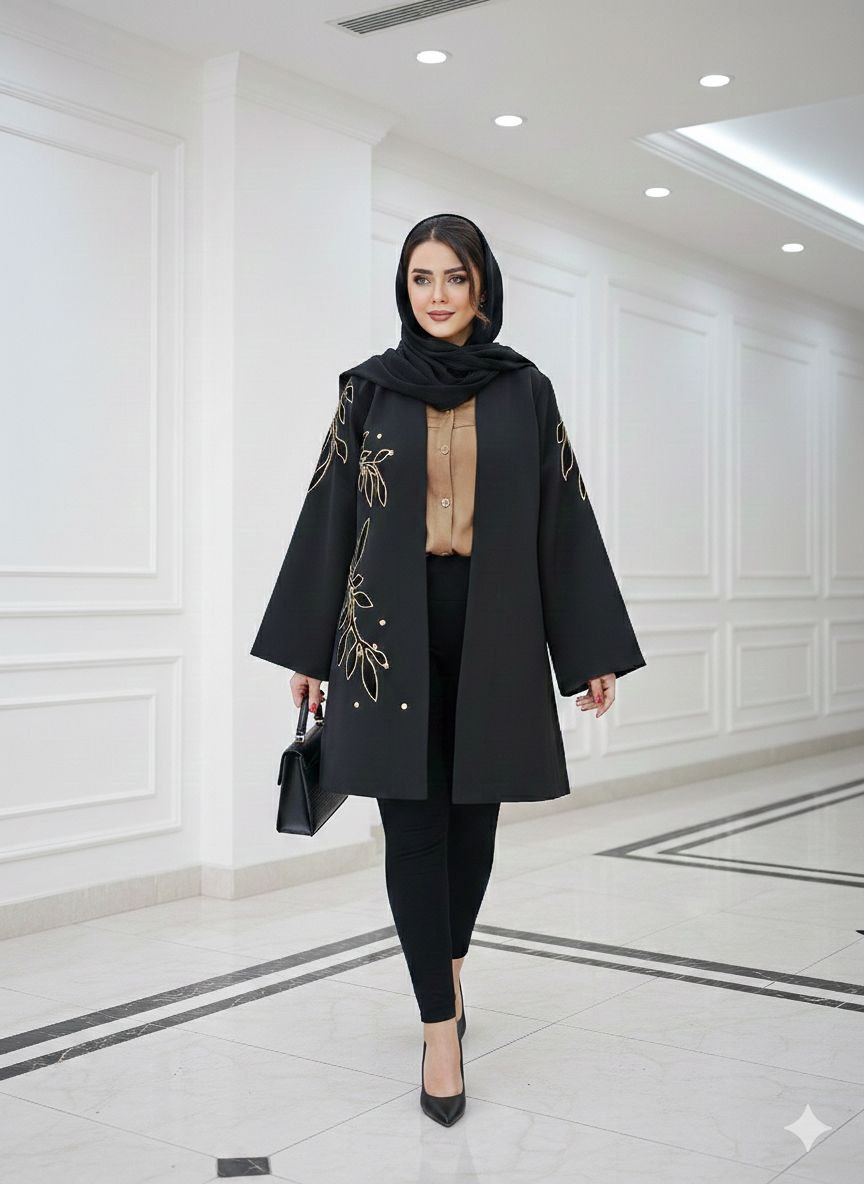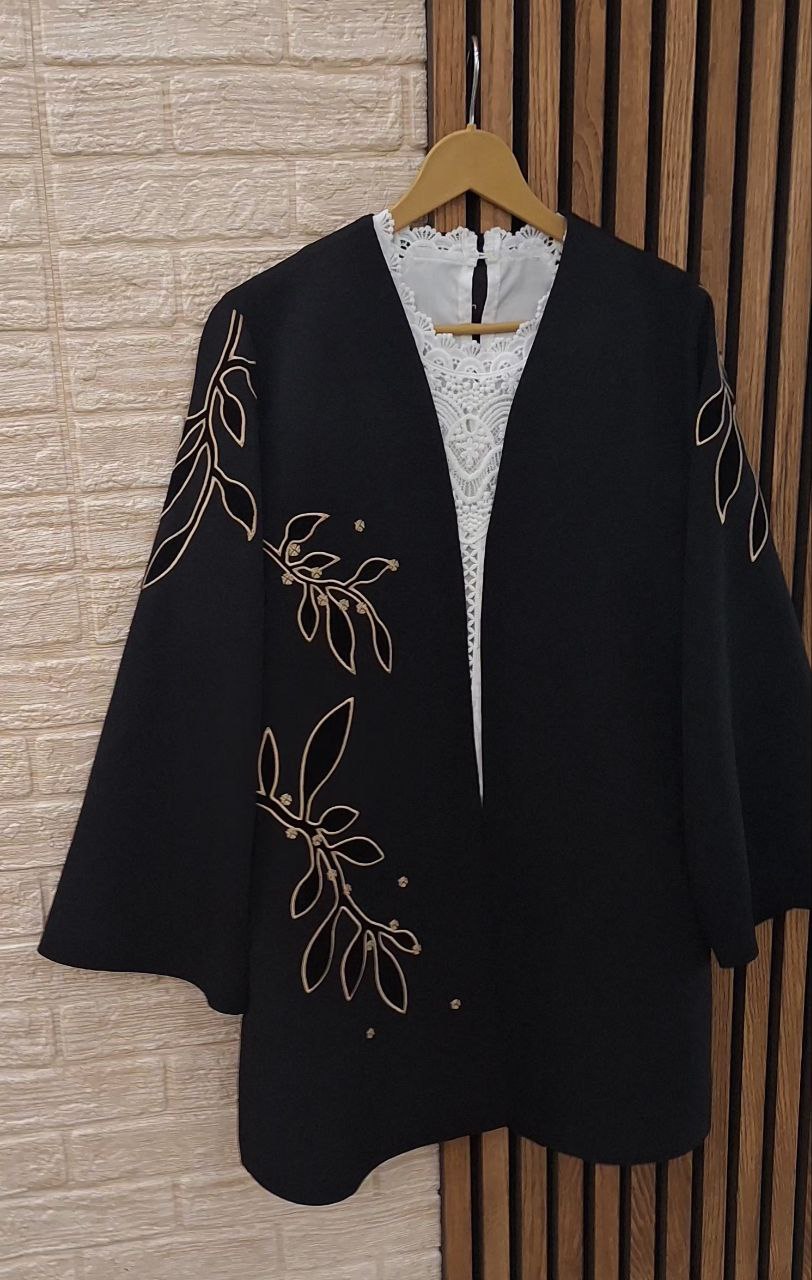 مانتویی خوشدوخت با تیکه دوزی ظریف روی کار ✨