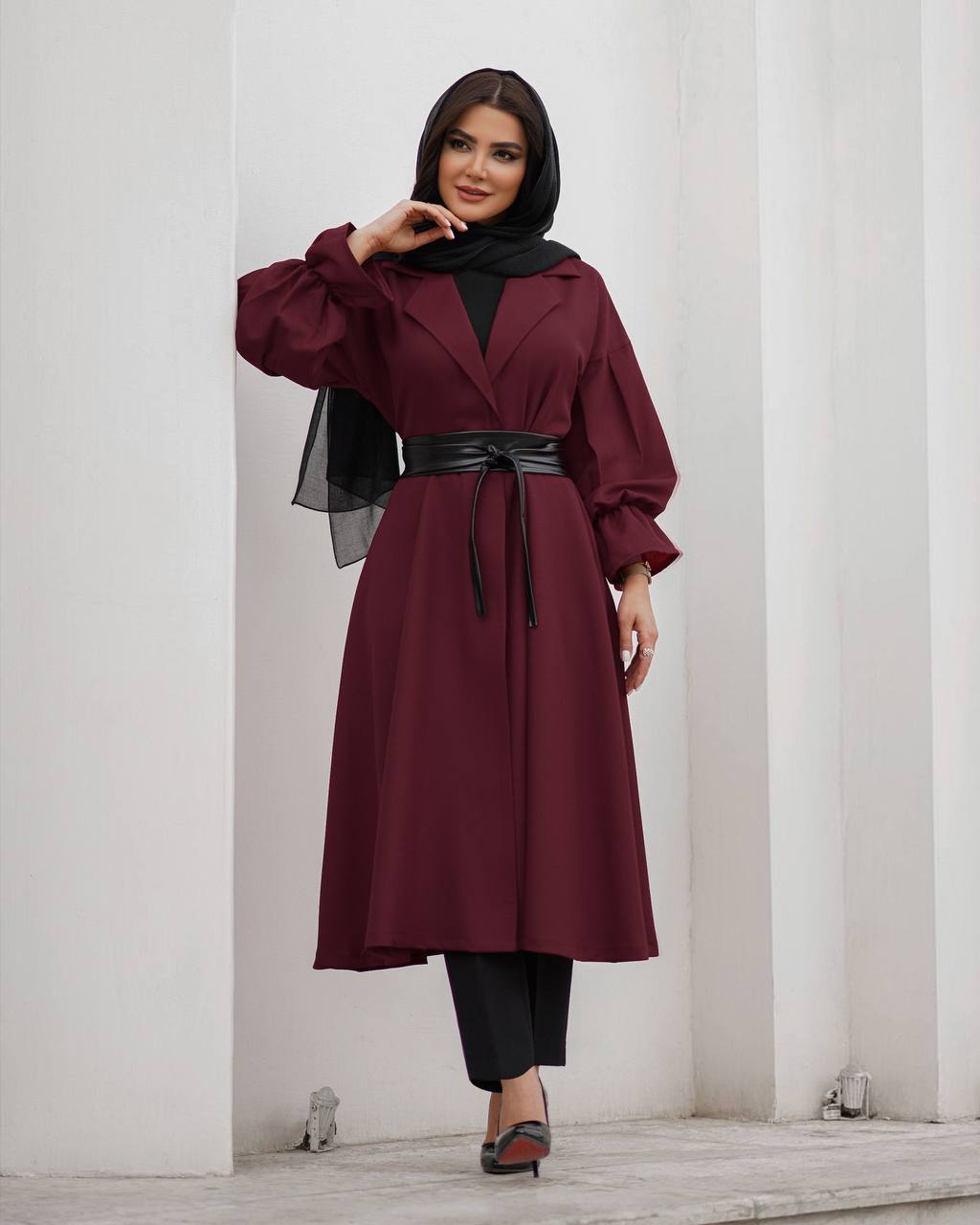 شارژ مجدد مانتو کلوش جذاب + کمربند چرم مزونی 😍✌ در دو قد کوتاه و بلند