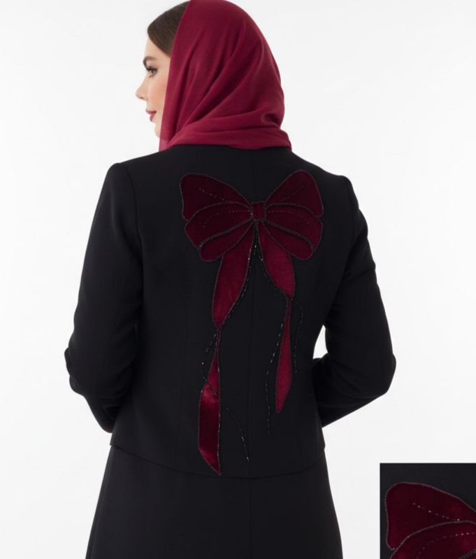 داخل کت کاملالایی کوبی شده پاپیون کاردست وسنگ دوزی وجواهردوزی شده